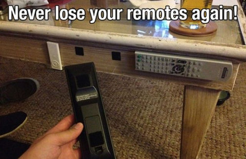 リモコンもマジックテープで貼り付けておくと、なくしにくい。