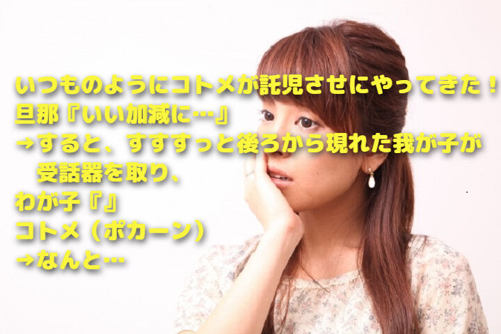 いつものようにコトメが託児させにやってきた!旦那『いい加減に…』→すると、すすすっと後ろから現れた我が子が受話器を取り、わが子『』コトメ(ポカーン)→なんと… 2022年09月30日 カテゴリ:GJ 我が家と義実家は番地が違うだけの同じ地域にあるんだけど、何かにつけてコトメが我が家もしくは義実家に子供を預けようとしてきた義実家は孫可愛さで了承することもあるけど、またその子が問題児で了解も無しに「何かないの?」と勝手に冷蔵庫を開けたりウトやうちの旦那が大事にしてる趣味の物を力任せに扱って壊しかけたりしても謝らないなどDQN丸出しコトメはコトメで○時には迎えにくると言っておいて下手すると一晩預けっぱなしで迎えに来てもありがとうの言葉も無く「帰るよ!」とコトメ子を引っ張っていくちなみにコトメは専業、働きに行くからとかそういうわけではなく単に子育てメンドクセで押しつけているだけ(本人が言ってた)コトメ旦那はその度に平謝りしてコトメや子を〆てるらしいがどうも旦那さんが元々おっとりした人なのもあって効果無し前はこんなのじゃなかったのに…もう離婚しようかな…としょんぼりしてたコトメ子からしたら実の叔父であるうちの旦那にもクソ生意気な口をきくので我が家も限界に来てた ⇒続きを読む