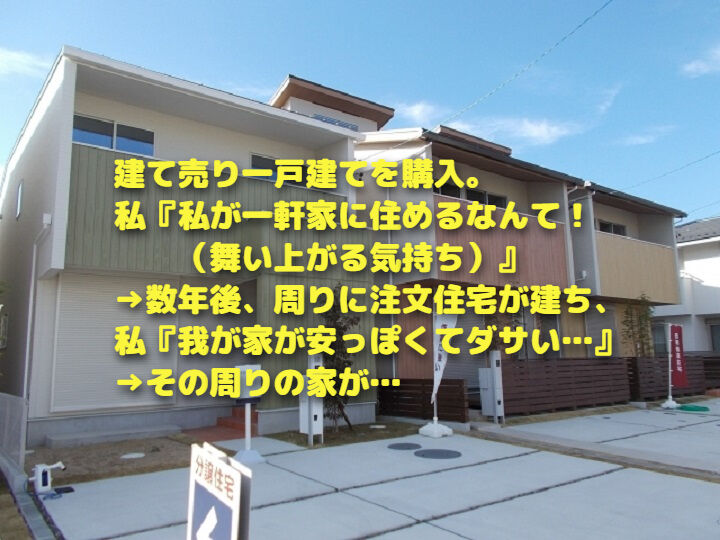 建て売り一戸建てを購入。私『私が一軒家に住めるなんて!(舞い上がる気持ち)』→数年後、周りに注文住宅が建ち、私『我が家が安っぽくてダサい…』→その周りの家が… 2022年09月29日 カテゴリ:衝撃 もう嫌だ…建て売り一戸建て購入住んで2ヶ月最初はボロ社宅からの引っ越しだったから注文とか建て売りとかも気にせず何となく場所が良くてまぁまぁ安いって感じの知識しかなく見学行くと主人も気に入りあれよあれよと言う間に契約私が一軒家に住めるなんて!って舞い上がるような気持ちでした主人も人生最大の買い物、私と娘が喜ぶ姿を見て買って良かった、返済頑張るぞって気合い入れてくれてますしかし新築ハイは終わり何となく周りが見えてきた頃… ⇒続きを読む 「衝撃」カテゴリの最新記事 コメントする コメントフォーム 名前 コメント 評価する リセット リセット 顔 星 投稿する 情報を記憶